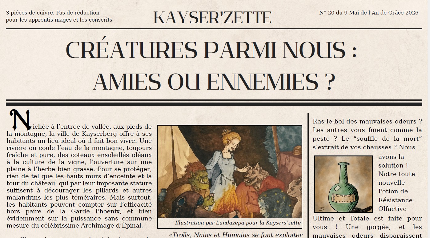 Vous qui êtes friands d’opinions tranchées, à la parole libérée. Vous qui voulez savoir ce qui motivera les participants au jeu de rôle Grandeur Nature qui fera vibrer les rues de Kaysersberg en 2026.